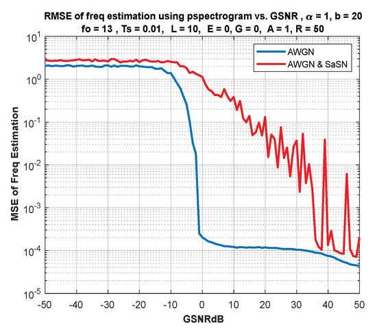 - Razzaq, H.S.; Hussain, Z.M. Instantaneous Frequency Estimation for Frequency-Modulated Signals under Gaussian and Symmetric α-Stable Noise. In Proceedings of the 31st International Telecommunication Networks and Applications Conference (ITNAC), Sydney, Australia, 24–26 November 2021. [Google Scholar]
