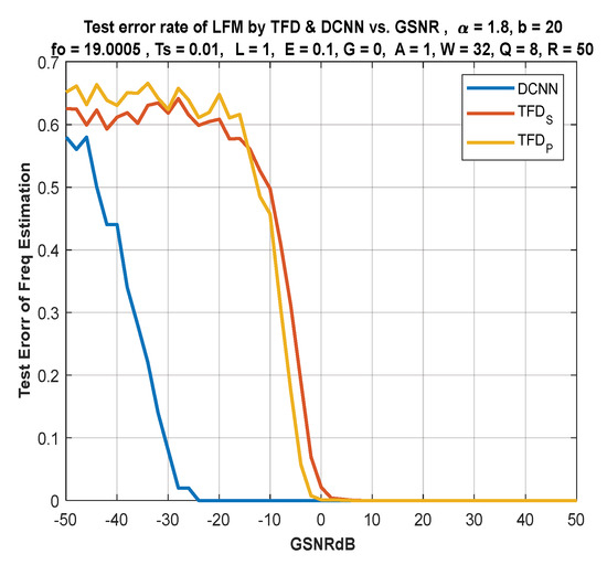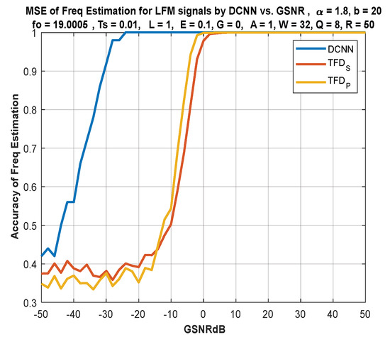 In a parallel direction of IF estimation for single-tones, Almayyali and Hussain reached promising results for using deep neural networks [12], where complexity has been reduced compared with classical techniques, making the DL approach suitable for SDR networks, sensors, and IoT applications. Generally, it is difficult to estimate the parameters of FM signal under a mixture of α-stable noise (non-Gaussian noise) and Gaussian noise. Moreover, the extensive dataset for noisy LFM signals is used for frequency and slope estimation. Deep learning significantly contributes to estimating parameters under the influence of these conditions. The convolutional network extracted features from these signals and then classified them for frequency and slope prediction. It is then compared with the classical method TFD.