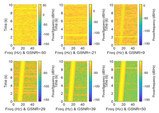 - Yin, Q.; Shen, L.; Lu, M.; Wang, X.; Liu, Z. Selection of optimal window length using STFT for quantitative SNR analysis of LFM signal. J. Syst. Eng. Electron. 2013, 24, 26–35. [Google Scholar] [CrossRef]