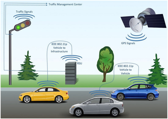 Figure 1 shows the structure of the VANET’s architecture. Due to the fact that the VANET network provides high-speed wireless connections and exchange of confidential information in real time, such a network can be susceptible to various attacks. The papers [8,9,10] analyze the VANET’s main vulnerabilities and attacks on it. Among them, the following types of attacks can be distinguished: attacks on availability, attacks on confidentiality, attacks on authentication, attacks on data integrity, and attacks on non-repudiation.