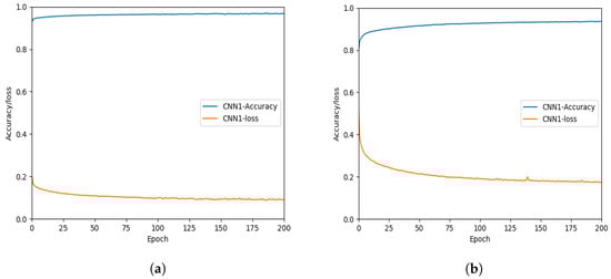 Accuracy loss plots of CNN on Dataset DS1. (a) CNN binary classification; (b) CNN multi-class classification.