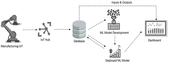 - Ayvaz, S.; Alpay, K. Predictive Maintenance System for Production Lines in Manufacturing: A Machine Learning Approach Using Iot Data in Real-Time. Expert Syst. Appl. 2020, 173, 114598. [Google Scholar] [CrossRef]
