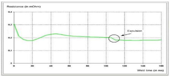 “Spot Resistance Welding” is electrical resistance welding, which successfully fuses materials to be combined [23]. This welding process mainly includes welding current, welding time, electrode force, contact resistance, electrode material property, surface condition, etc., controlled by variables. The weld current, voltage, gas flow rate, heat input, and the AE energy accumulation rate (extracted from time-driven AE) can be used as welding parameters in an acoustic emission system [5].