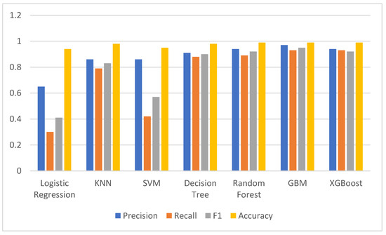 Table 15 also shows that the accuracy scores were relatively high. The F1 score was also evaluated as there was imbalanced data in this study. The GBM model was the most successful model in terms of the F1 score. Figure 9 represent the confusion matrix for GBM, which is the algorithm that obtained the best F1 score rate.