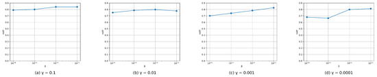 To analyze the influence of hyper-parameters and on retrieval performance, we conducted experiments to determine the impact of the choice of and on retrieval performance. We tested the and from to with a multiplicative step-size ten on the CIFAR-10 dataset in the case of code. In Figure 6, we display the changes in mAP curves of DFPH concerning the variation of and . We can see that MAP initially increases with the increase of and , while the performances progressively stabilize after reaching their peak. Additionally, we can always obtain satisfactory performance in a large range of and , which shows that our method is not sensitive to parameters and and accordingly proves the robustness of our method.