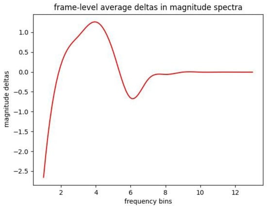 In order to quantitatively display the spectrum difference between the genuine-replay twins, we statistically calculate the frequency domain difference of a few samples. From the twin signals cut a window and calculate the frequency domain difference, and obtain the quantitative average deltas at different frequency point. The results are shown in Figure 5. We divide the frequency domain data into 12 frequency bins, and averaged the several sample windows to calculate the delta differences. These bins represent the linear scale of frequency. The results show that the deltas will have an obvious fluctuation in the high frequency part before it becomes stable. This trend further verifies that with the genuine-replay twin signals have spectrum difference in certain parts.
