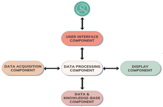 The proposed system architecture consisted of several functional components: (1) data acquisition; (2) user interface; (3) data & knowledge base; (4) data processing; and (5) display component, as shown in Figure 2. All of these components will be detailed in each of the following sub-sections.