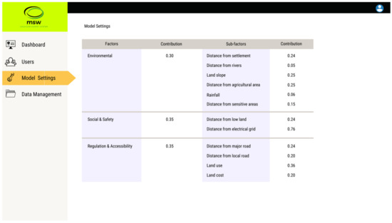 The system administrator is responsible for managing, organizing, compiling, creating, updating, and deleting the system’s registered users, data, and knowledge base (Figure 7). The expert system is equipped with tools (Figure 8) to update data and content models for spatial data analysis in selecting suitable final disposal sites for energy generation from municipal solid waste.