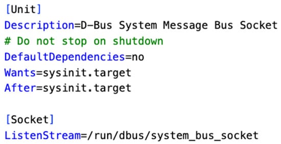 dbus.socket for system bus. In this figure, the syntax is shown in blue, while the comments are shown in green.