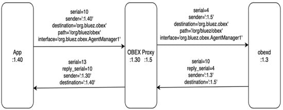 D-Bus is a message-oriented middleware (MOM) for client–server inter-process communication between multiple applications developed by freedesktop.org [51,52]. The freedesktop.org project, formerly the X Desktop Group (XDG), focuses on developing standards and specifications for desktop environments for the X Window System, such as GNOME and KDE. D-Bus eliminates the need to manage multiple one-to-one IPCs between processes by creating a virtual bus system. Each process sends and receives messages via the dbus-daemon, which routes these messages to the correct procedures.