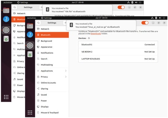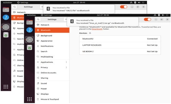 Malware’s functional complexity has increased with time, substantially affecting practically all gadgets. Malware may be divided into many categories according to its operation, including worms, trojan horses, viruses, spyware, ransomware, rootkits, and backdoors. IoT malware is interesting because, although it falls into several categories, it is all bot-based, meaning it uses botnets for command and control, execution, and distribution. Bluetooth is a well-liked wireless technology that enables close-range communication between devices. However, the BlueBorne attack is a significant security flaw that may be used to access Bluetooth devices without authorization—a fresh approach to forecasting and stopping BlueBorne assaults. It can build the model on the application layer and has demonstrated greater efficacy than earlier models. Studies that have already been carried out [43,44] concentrate on screening malicious Bluetooth packets that might lead to remote code execution. Miretskiy et al. [45] sought to filter all files in the system while they tried to halt Bluetooth worms during the assault phase. The second method invariably resulted in a system overhead, whereas the former demands new rules for each CVE that can be identified in the future.