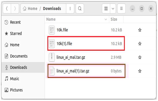 The accuracy of the BOP was tested with 3607 malicious files downloaded from Bazaar’s daily submissions [62] that are smaller than 100 KB in size, as well as 1056 files from BlueZ’s GitHub repository source files [63]. Files with any “malicious” or “suspicious” records from VirusTotal are counted as malicious, while others are non-malicious. One hundred and seven malicious files passed the BOP filter, while the BOP blocked none of the normal files in Figure 20. Hence, the false positive rate of the BOP is zero, and the false negative rate of the BOP is 2.29%. The 107 false negatives are discussed in the last section. In the accuracy section, we say that there are 107 false positives. Later, we uploaded the 107 files to VirusTotal to see if the result changed. Two files were marked as malicious, and the remaining 105 files are still marked as clean by VirusTotal. Among the 105 files, 58 have community comments in the VirusTotal database. Fifty of them are from Nextron Systems’ THOR APT scanner. Most of them are PE files with malformed or corrupted headers. One file from FileScan.IO was marked as clean, as well as two from Malshare, two from Joe Sandbox Analysis, one with suspicious comments, one with malicious words, and one with size 0.