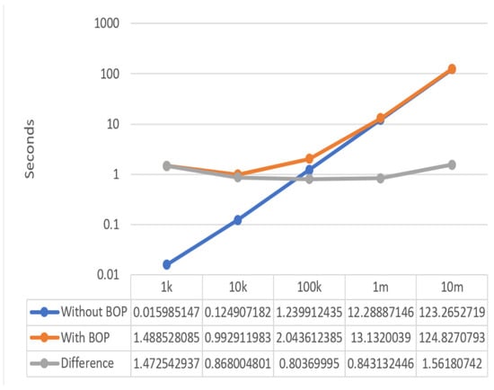 The performance difference comes from the time it takes to receive a response from the VirusTotal API after making an API call. The request time has a significant impact on the performance of the BOP.