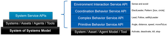 The benefits of API-based system engineering are manyfold. API-enabled systems allow other community players to design their systems to the advertised APIs for plugin development, facilitating the extensibility of API-enabled system specifications. APIs serve as contractual agreements for system contractors and subcontractors to preserve their intellectual property behind a service facade and offer functionality that is extensible. APIs, when organized through a layered architecture, such as MaaS here, offer performance and instrumentation for different functional categories of an API-enabled system. The layered API structure offers additional advantages where dedicated computational resources can be assigned to specific API layers. For example, in Figure 1, lower-level APIs such as the Primitive Behavior Service API require the maximum computational resources in terms of memory, cpu, and bandwidth due to the high frequency of data exchange requirements to support the service layers over them. Last but not least, APIs employ strong-typed specifications, which remove any ambiguity from the data exchange requirement. This allows rapid data integration, ensuring syntactic interoperability. API-enabled SoS ensure semantic interoperability at the functional SoS level.