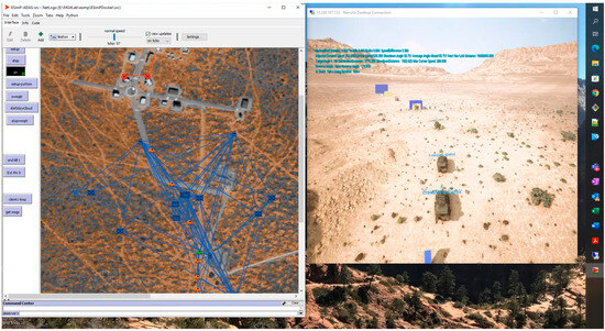 Figure 13. Unreal UGV Convoy and ESimP Mission Level Model synced in a hybrid cloud environment.