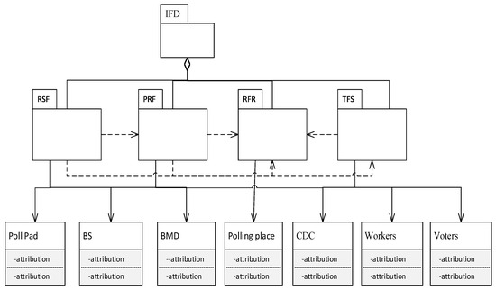 - In the design and development phase, we design and model election systems using a multi-agent-based modeling approach. This approach aims to identify and create an election system based on diverse types of agents. In this phase, the election system is considered structurally. The first preliminary domain model is created based on the requirement analysis phase; then, considering the close loop feedback method [27], we construct the detailed design of the system. The output of this phase includes a capability overview, process model, system overview model, object diagram, and agent-based description diagram. Each of these models is explained as follows.