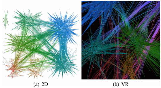 - Kwon, O.H.; Muelder, C.; Lee, K.; Ma, K.L. A Study of Layout, Rendering, and Interaction Methods for Immersive Graph Visualization. IEEE Trans. Vis. Comput. Graph. 2016, 22, 1802–1815. [Google Scholar] [CrossRef] [PubMed]
