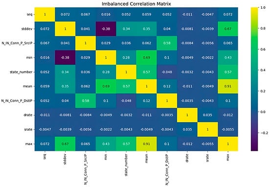 The correlation coefficient measures the relationship between two factors in a given dataset. In the BoT-IoT dataset, analyzing the correlation coefficient can provide valuable insights into the interdependencies and associations between different variables. Thereby enhancing comprehension of the dataset and its potential patterns, as seen in Figure 1.