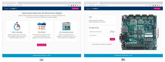 - Oballe-Peinado, Ó.; Castellanos-Ramos, J.; Sánchez-Durán, J.A.; Navas-González, R.; Daza-Márquez, A.; Botín-Córdoba, J.A. FPGA-Based Remote Laboratory for Digital Electronics. In Proceedings of the XIV Technologies Applied to Electronics Teaching Conference (TAEE), Porto, Portugal, 8–10 July 2020. [Google Scholar] [CrossRef]