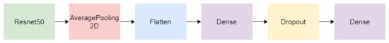 As shown in Figure 2, ResNet50 is used as the base model and the first layer of our model. To this ResNet50 model, we added the following layers: