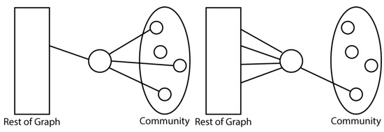 - Kulkarni, K.; Pagourtzis, A.; Potika, K.; Potikas, P.; Souliou, D. Community Detection via Neighborhood Overlap and Spanning Tree Computations. In Algorithmic Aspects of Cloud Computing: 4th International Symposium, ALGOCLOUD 2018, Helsinki, Finland, 20–21 August 2018; Lecture Notes in Computer Science; Springer: Berlin/Heidelberg, Germany, 2018; Volume 11409, pp. 13–24. [Google Scholar]