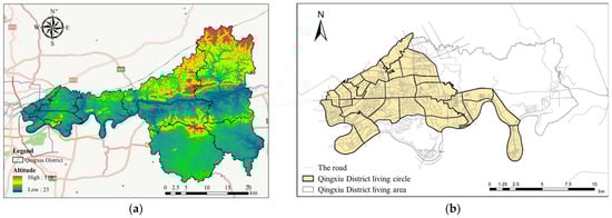 Qingxiu District map. (a) Qingxiu District. (b) Urban area and living circle in Qingxiu District.