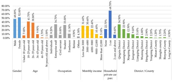 RP and SP survey methods are two commonly used methods for investigating transportation behaviors. RP survey methods are based on observing behaviors that have already occurred and can provide reliable data regarding actual behaviors. On the other hand, SP survey methods obtain people’s subjective willingness and preferences through questionnaires, which can offer insights into decision-making processes and potential behaviors. In this paper, we aim to obtain information about respondents’ subjective attitudes, preferences, and willingness by presenting a series of scenarios and choices. Respondents will then be able to express their preferences within the virtual scenarios. Therefore, we chose to utilize SP survey methods to collect data for this research.