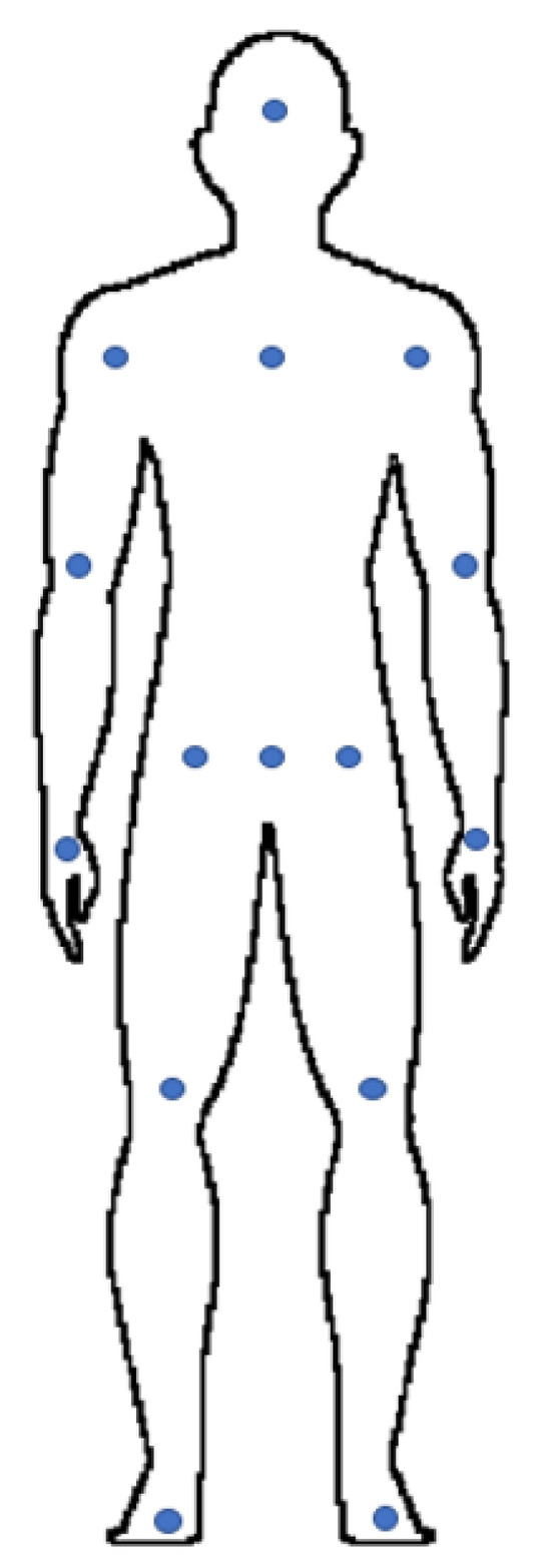 - A 15-point model was used in the dataset, including the whole body view. In cases where any of these 15 points are missing, the corresponding position is considered empty.
