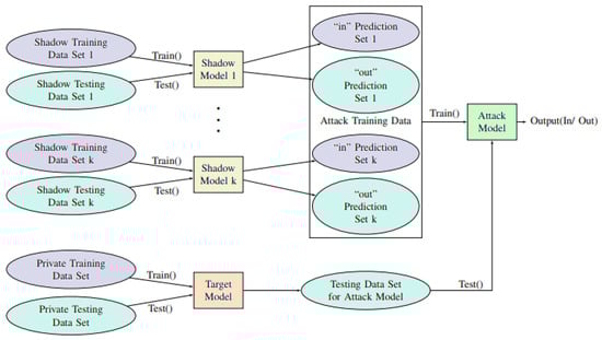 - Shokri, R.; Stronati, M.; Song, C.; Shmatikov, V. Membership inference attacks against machine learning models. In Proceedings of the 2017 IEEE Symposium on Security and Privacy (SP), San Jose, CA, USA, 22–24 May 2017; pp. 3–18. [Google Scholar]