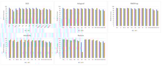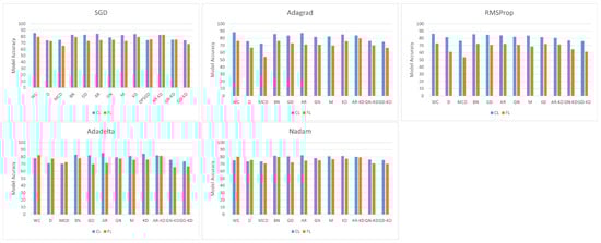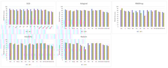 Comparison of model accuracy of CL and FL using various optimizers and countermeasures—MNIST dataset.