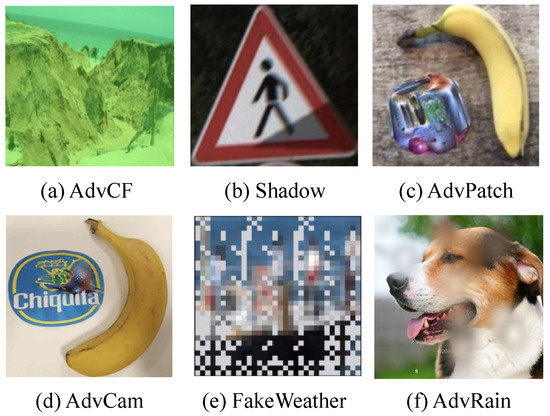 - Kurakin, A.; Goodfellow, I.J.; Bengio, S. Adversarial examples in the physical world. arXiv 2016, arXiv:1607.02533. [Google Scholar]