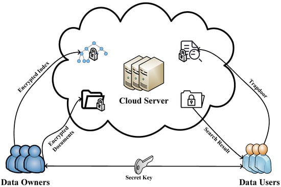 - Data user (DU). When an authorized DU wants to launch a query Q, DU generates a trapdoor using the secret key shared by DO. After this, the DU sends the trapdoor to a CS. Once the DU receives the encrypted documents back from a CS, they decrypt these documents using the secret key to recover the original plaintext.