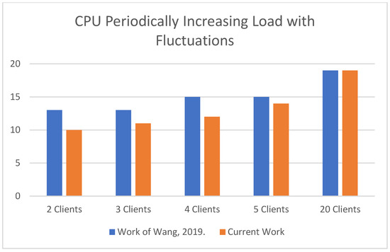 CPU Periodically Increasing Load with Fluctuations in time execution results (current work and work of [16]).