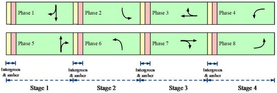 - In Scenario 2 (S2), we use a standard BSP method, of which the priority strategy is red truncation. The earlier study demonstrated that the red truncation strategy has a better performance than the green stage extended strategy to reduce delays at intersections [].