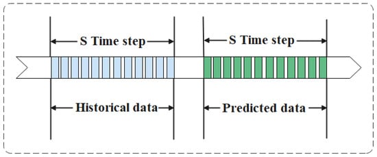 As shown in Figure 4. In the prediction traffic congestion problem, the future traffic congestion data depends on the traffic congestion data in the past time slices. Suppose that predicting the number of traffic congestions at time step and all nodes beyond, the input data are defined in this paper as shown in Equation (3). The output data are defined as shown in Equation (4). Where is the size of the time step and is the total number of all nodes.