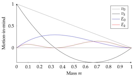 The relationship between the objective velocity v and subjective velocity can be established. Let be the reward function over various masses for the perfect player, which corresponds to the objectivity provided by (7). Then, is a reward function over various m for a player with ability parameter k, which is provided by (8). The ability parameter k stands for the strength of the players in the competitive game context or error-tolerance in the social or non-competitive context. For example, there is no error tolerance for the perfect player .