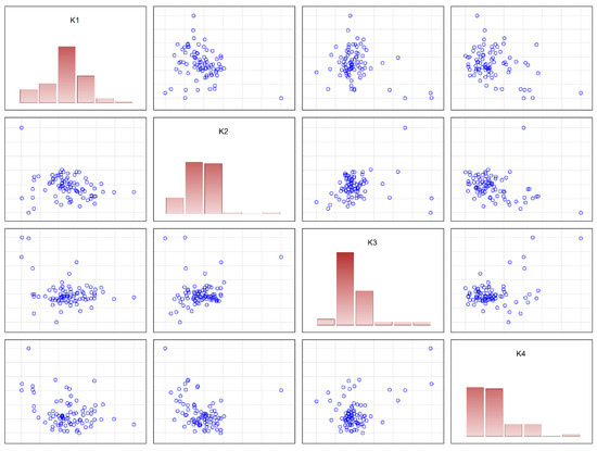 Let us build a correlation matrix of the statistical relationships between the coefficients of transformation of numerical information Ki: K1, K2, K3, K4 (Figure 8, Table 4).