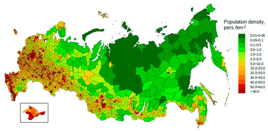 - Population of the Russian Federation by Regions and Municipalities. 2021. Available online: https://rosstat.gov.ru/compendium/document/13282 (accessed on 20 October 2021). (In Russian)
