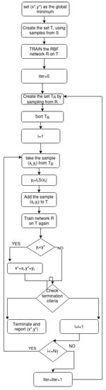In this paper, a new multistart method is proposed that uses a machine learning model, which is trained in parallel with the evolution of the optimization process. Although multistart methods are considered the basis for more modern optimization techniques, they have been successfully used in several problems such as the Traveling Salesman Problem (TSP) [49,50,51], the maximum clique problem [52,53], the vehicle routing problem [54,55], scheduling problems [56,57], etc. In the new technique, a Radial Basis Function (RBF) network [58] is used to construct an approximation of the objective function. This construction is carried out in parallel with the execution of the optimization. A limited number of samples from the objective function and the local minima discovered during the optimization are used to construct the approximation function. During the execution of the method, the samples needed to start local minimizers are taken from the approximation function that is constructed by the neural network. The RBF network was used as an approximation tool as it has been successfully used in a wide range of problems in the field of artificial intelligence [59,60,61,62] and its training procedure is very fast, if compared to artificial neural networks, for example. In addition, for a more efficient termination of the method, a termination method proposed by Tsoulos is used [63], but this termination method is applied after each execution of the local minimization procedure. The mentioned method was applied to some test functions provided by the relevant literature and the results are extremely promising as compared with other global optimization techniques.