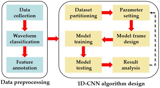 The design process of the 1D-CNN model in this study consists of two parts. The first part was the preparation of the dataset, and the second part was the design of the algorithm model. The model flow chart is shown in Figure 3.