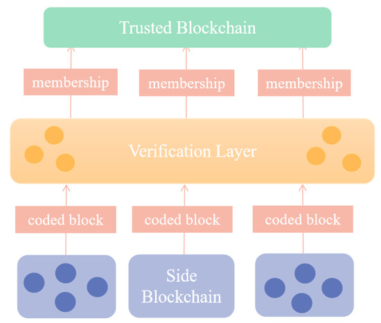 This paper proposes an intermediate “data availability verification” mechanism between the side blockchain (i.e., smaller blockchains) and the trusted blockchain (i.e., larger blockchains). The side blockchain transmits data to the verification layer, which then transmits verifiable membership witnesses to the trusted blockchain and ensures that the data is available in the side blockchain. N verification nodes work together to verify whether the proposed blocks are searchable (that is, data is available) before submitting it to the trusted blockchain. The key problem is how to share data securely and efficiently among nodes to verify the availability of data.