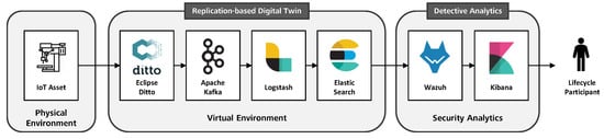 - Empl, P.; Schlette, D.; Zupfer, D.; Pernul, G. SOAR4IoT: Securing IoT Assets with Digital Twins. In Proceedings of the 17th International Conference on Availability, Reliability and Security (ARES 2022), Vienna, Austria, 23–26 August 2022; Association for Computing Machinery: New York, NY, USA, 2022. [Google Scholar] [CrossRef]