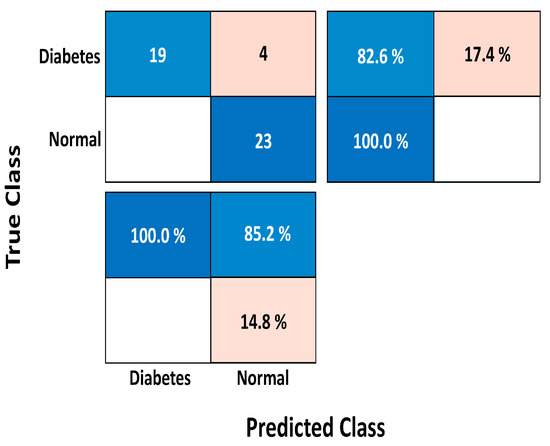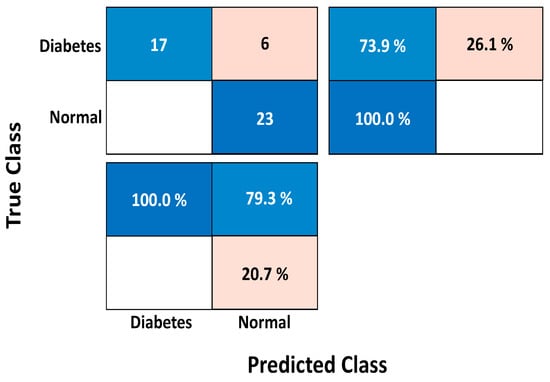 | Diabetes | 78.3 | 21.7 | 100 | 0 | 89.15 | 100.00 | 82..17 | 100.00 | 78.30 | 89.33 |