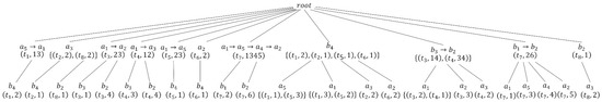 With Table 1 as the original trajectory dataset T and attackers set as the inputs, let us execute the TP-treeConstruction algorithm [10]to construct a TP-tree corresponding to T. The TP-tree of Table 1is shown in Figure 1. The details of the TP-tree are introduced as follows: