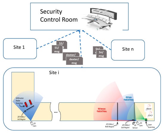 As an example, Figure 1 highlights the deployment with MIC (microwave imaging curtain) detector, a radar system that generates two-dimensional and three-dimensional images in real time of explosives and firearms carried by persons, and EXTRAS (EXplosive TRAce detection Sensor), a detector of explosive traces on surfaces through the implementation of spectroscopy techniques. Such a deployment has been realized within the DEXTER (Detection of Explosives and firearms to counter TERrorism) project of the NATO Science for Peace and Security (SPS) Programme.