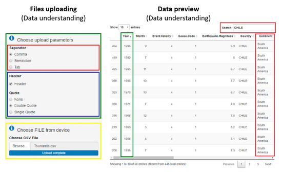 Files uploading and data preview (data understanding).