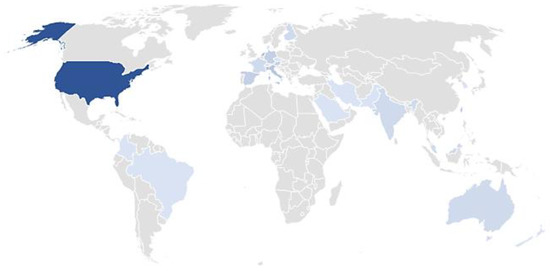 Figure 6 presents the author’s countries. Most of the authors were from the USA (16.3%). The German authors produced 13.0% of papers, the United Kingdom authors 9.7%, Spanish 8.2%, Taiwan authors 6.0%, and Finnish authors 5.7%. The result shows that the topic is investigated worldwide, in the USA, and Western European countries.