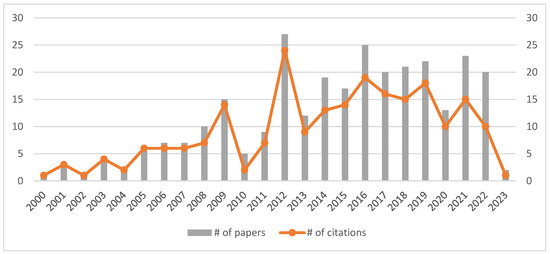 Number of papers and citations from 2000 to 2023; Source: Authors’ work based on Scopus.