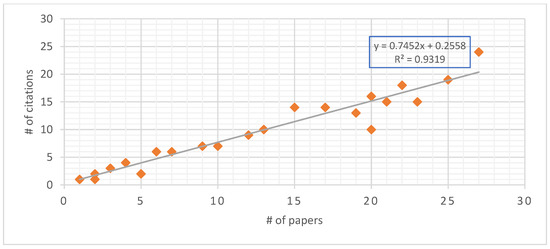 Scatter plot of the number of papers and citations from 2000 to 2023; Source: Authors’ work based on Scopus.