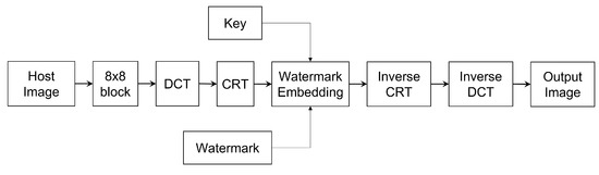 - Patra, J.C.; Phua, J.E.; Bornand, C. A novel DCT domain CRT-based watermarking scheme for image authentication surviving JPEG compression. Digit. Signal Process. A Rev. J. 2010, 20, 1597–1611. [Google Scholar] [CrossRef]